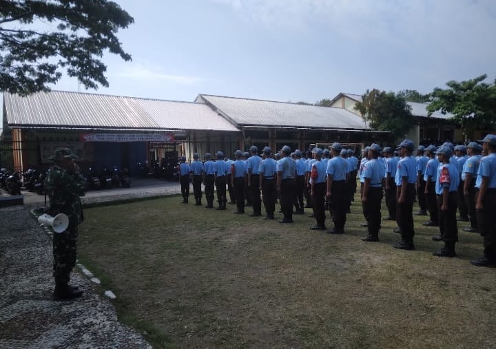 Babinsa Berikan Materi Dasar Berbaris Kepada Siswa SMK Sakti