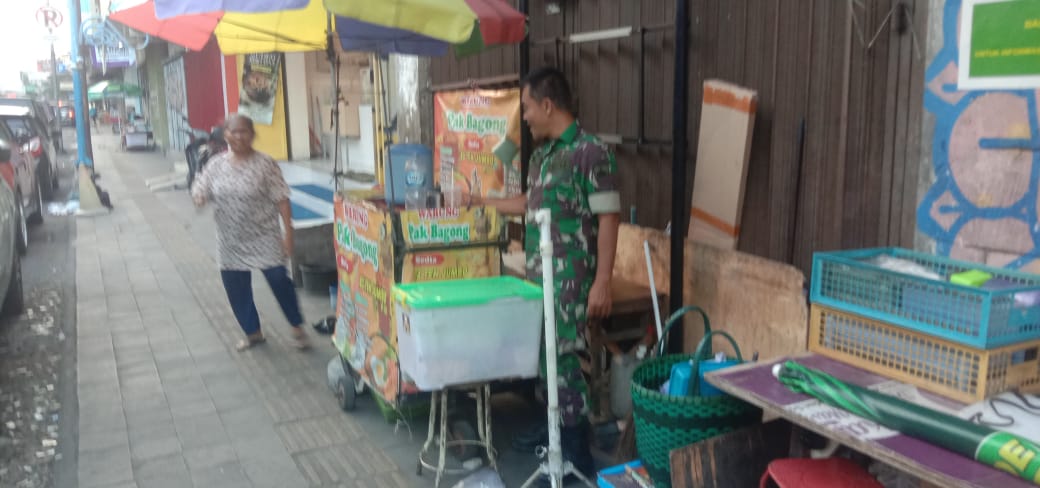Kegiatan tersebut sekaligus untuk mengontrol pelaku UMKM secara rutin setiap bulannya, khususnya di wilayah Kelurahan serengan Kecamatan Serengan Kota Surakarta, Serka Suwarno datang tepat pukul 08 30 WIB dan langsung melakukan pemantauan di Jln. Adusta Serengan Kota Surakarta.