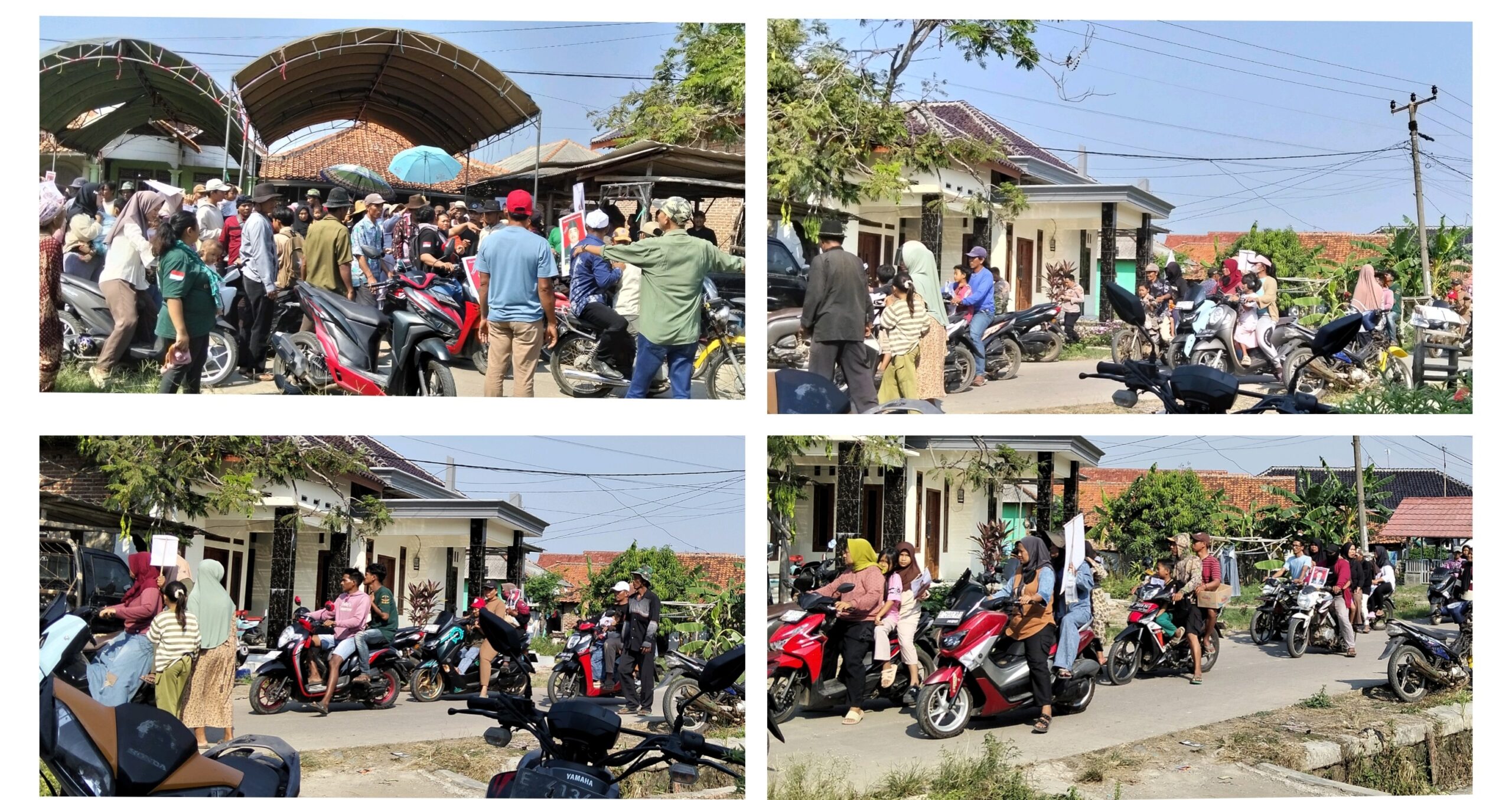 Darjono Kuwu Incumbent didampingi istrinya sebelum berangkat mendaftarkan pencalonan terlebih dahulu kumpul dihalaman rumahnya baik keluarga besar, tetangga dan masyarakat yang masih kompak dan guyub, melihat ribuan masa Isak tangis Darjono, sangat terharu melihat pendukung dan pengiringnua untuk mengawal ke kantor desa.