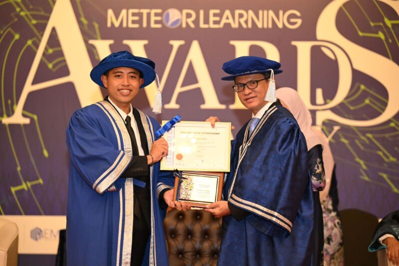 Penghargaan tersebut diberikan dalam acara resmi yang dipimpin oleh YBHG Prof. Dato’ Dr. Ahmad Izanee Bin Awang, President/Vice Chancellor, dan Encik Bani Bin Zainal Azmian, CEO METEOR Learning Sdn. Bhd.
