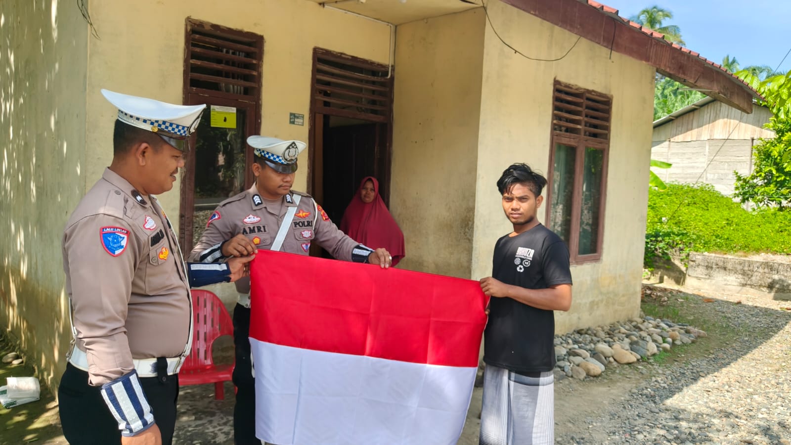 Kegiatan ini untuk menyemarakkan HUT ke-80 Republik Indonesia (RI) dengan mengibarkan bendera di depan rumah masyarakat, Pembagian bendera dilakukan oleh Danpos Brigpol Amri, S.AB, Brigpol Wawan dan Aipda Awaludin SH