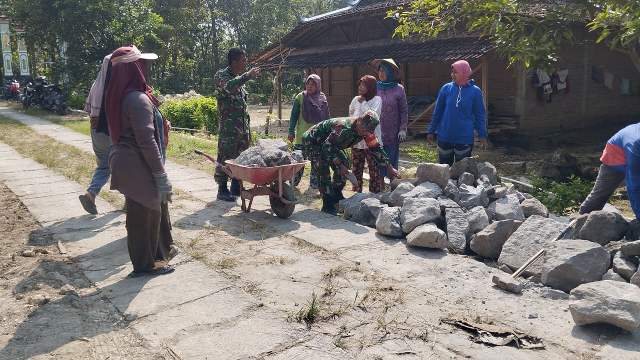 Cegah Banjir, Babinsa Ngemplak Ajak Warga Gotong Royong perbaikan Jalan dan Selokan