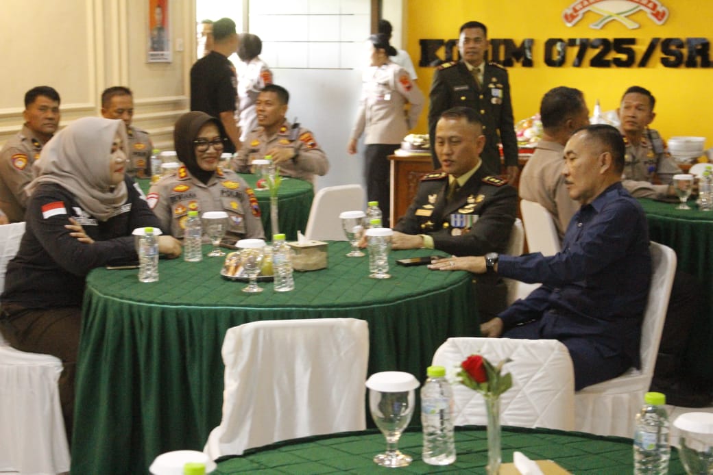 Kapolres datang bersama anggota, Ketua DPRD, Kajari dll, Kedatangan Kapolres dan rombongan tidak lain dan tidak bukan ingin memberikan ucapan di hari ulang TNI yang ke-80. Dandim 0725/Sragen Letkol Inf Ricky Julianto Wuwung, S.Sos, M.IP menyambut langsung rombongan tersebut. Minggu, 05/10/2025.