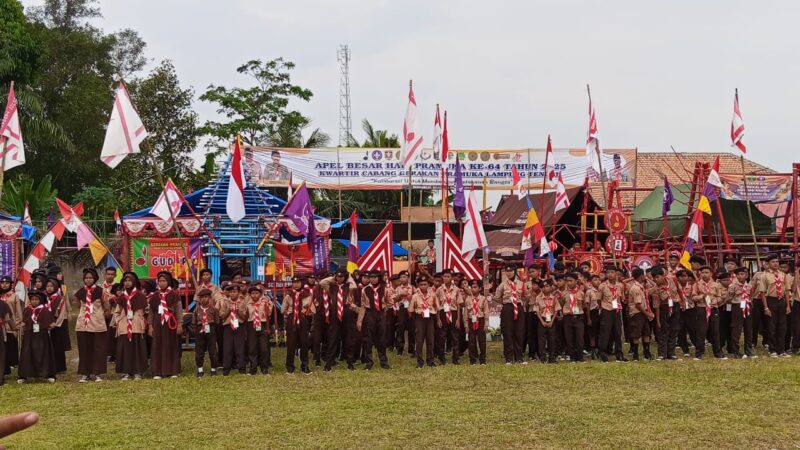 Bangunrejo, Lampung Tengah — Dalam rangka memperingati Hari Pramuka ke-64 tahun 2025, Kwartir Cabang (Kwarcab) Gerakan Pramuka Lampung Tengah menggelar Jambore Ranting dan Apel Besar yang berlangsung di Lapangan Sripendowo, Kecamatan Bangunrejo, pada Minggu (19/10/2025).