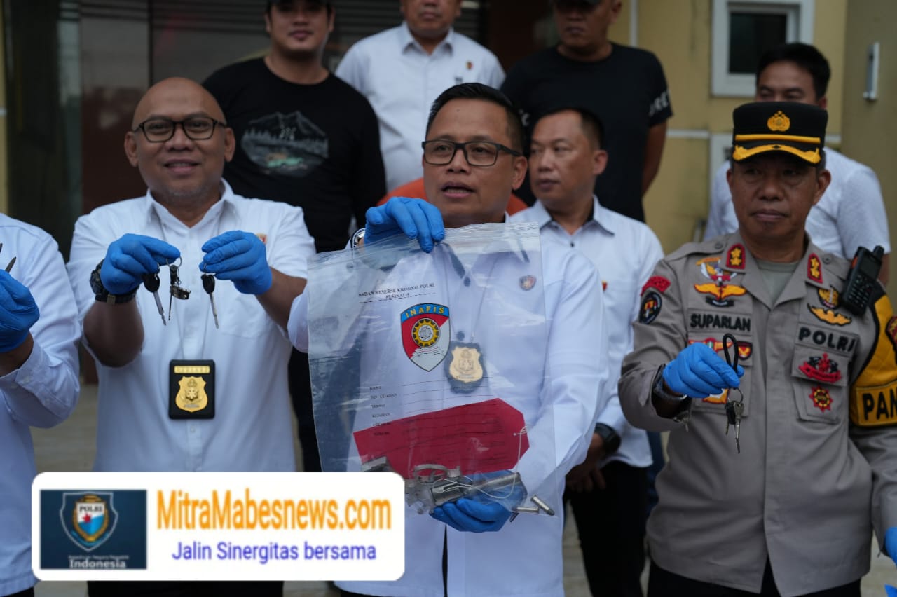 Dari tangan tersangka polisi mengamankan barang bukti diantaranya, lima unit sepeda motor, Satu pucuk senjata api rakitan, lima butir amunisi aktif, satu set kunci letter T.