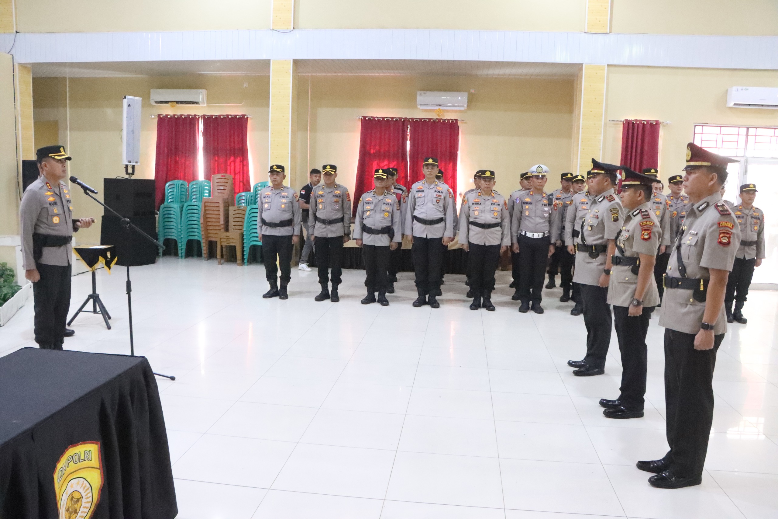 Tampak hadir memenuhi aula, seluruh jajaran pimpinan Polres Banyuasin, mulai dari Wakapolres Kompol Muhammad Ali Asri, S.H., seluruh Kabag SDM, Ops, Log, dan Ren, para Kasat, Kasi, Kapolsek, hingga perwira dan bintara. Kehadiran Ketua Bhayangkari Cabang Banyuasin, Ny. Dian Ruri, beserta Wakil Ketua dan staf, turut menyemarakkan sekaligus memberikan nuansa kehangatan keluarga besar Bhayangkari dalam acara tersebut.