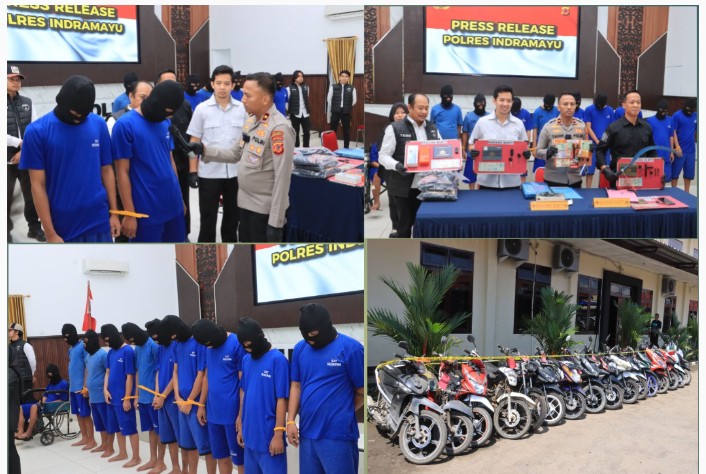 “Dalam periode tersebut terdapat tujuh kejadian di wilayah hukum Polres Indramayu, antara lain di Polsek Karangampel, Widasari, Anjatan, Gantar, dan Indramayu. Dari hasil penyelidikan, kami amankan total 14 tersangka,” ujar Kompol Tahir didampingi Kasat Reskrim Polres Indramayu AKP Muchammad Arwin Bachar dan Kasie Humas Polres Indramayu AKP Tarno saat konferensi pers di Mapolres Indramayu, Senin (13/10/2025).