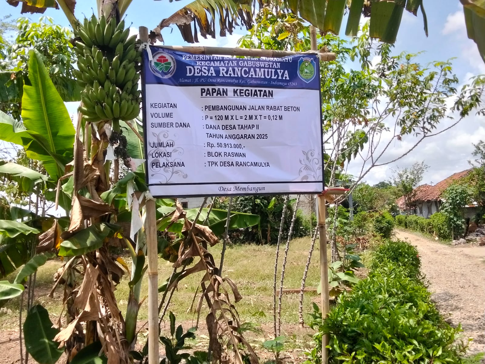 Pemerintah Desa Rancamulya Kecamatan Gabuswetan, Kabupaten Indramayu Jawa Barat, siap melaksanakan pengerasan jalan cor betonisasi sumber dana dari DD tahap II Tahun 2025.