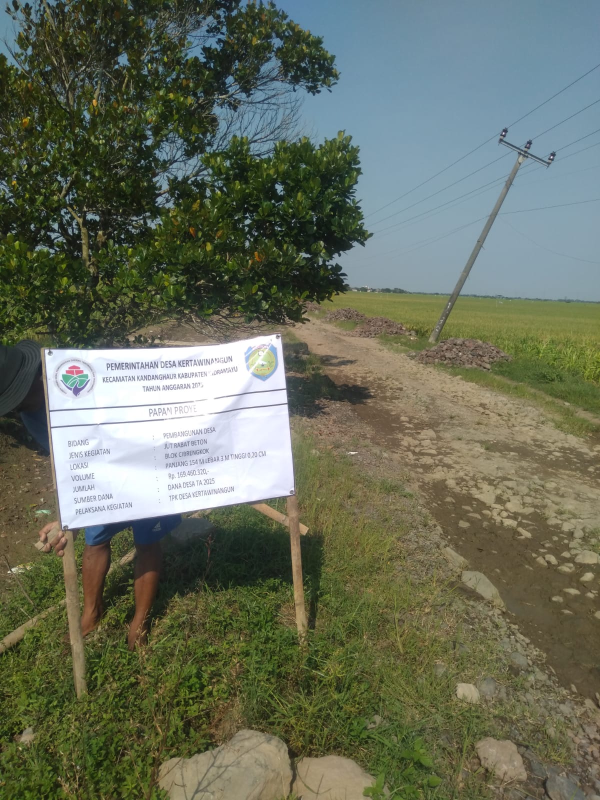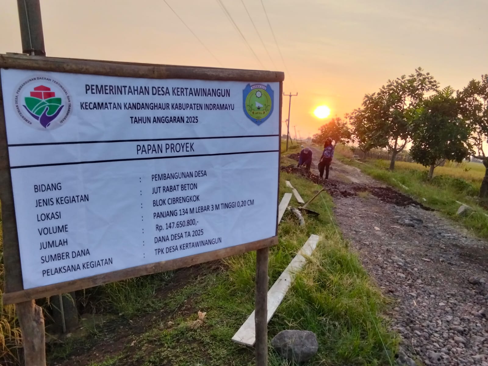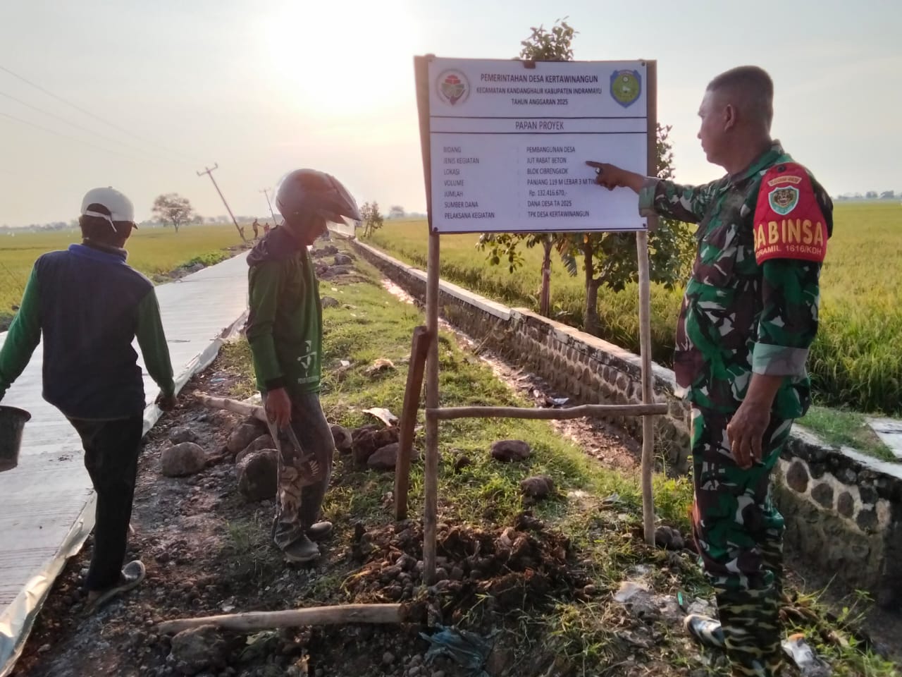 Pemerintah Desa Kertawinangun, Kecamatan Kandanghaur, Kabupaten Indramayu, Jawa Barat, melaksanakan pengerasan jalan menggunakan cor betonisasi dari Dana Desa Tahun Anggaran 2025. Pa Rastono, sebagai TPK, menyampaikan bahwa kegiatan pekerjaan ini dilakukan dengan mengedepankan program padat karya dan memanfaatkan kegiatan masyarakat setempat.