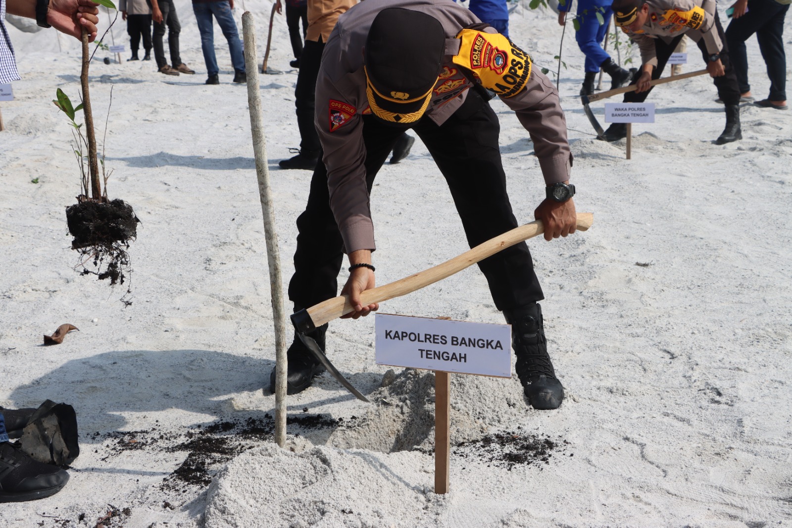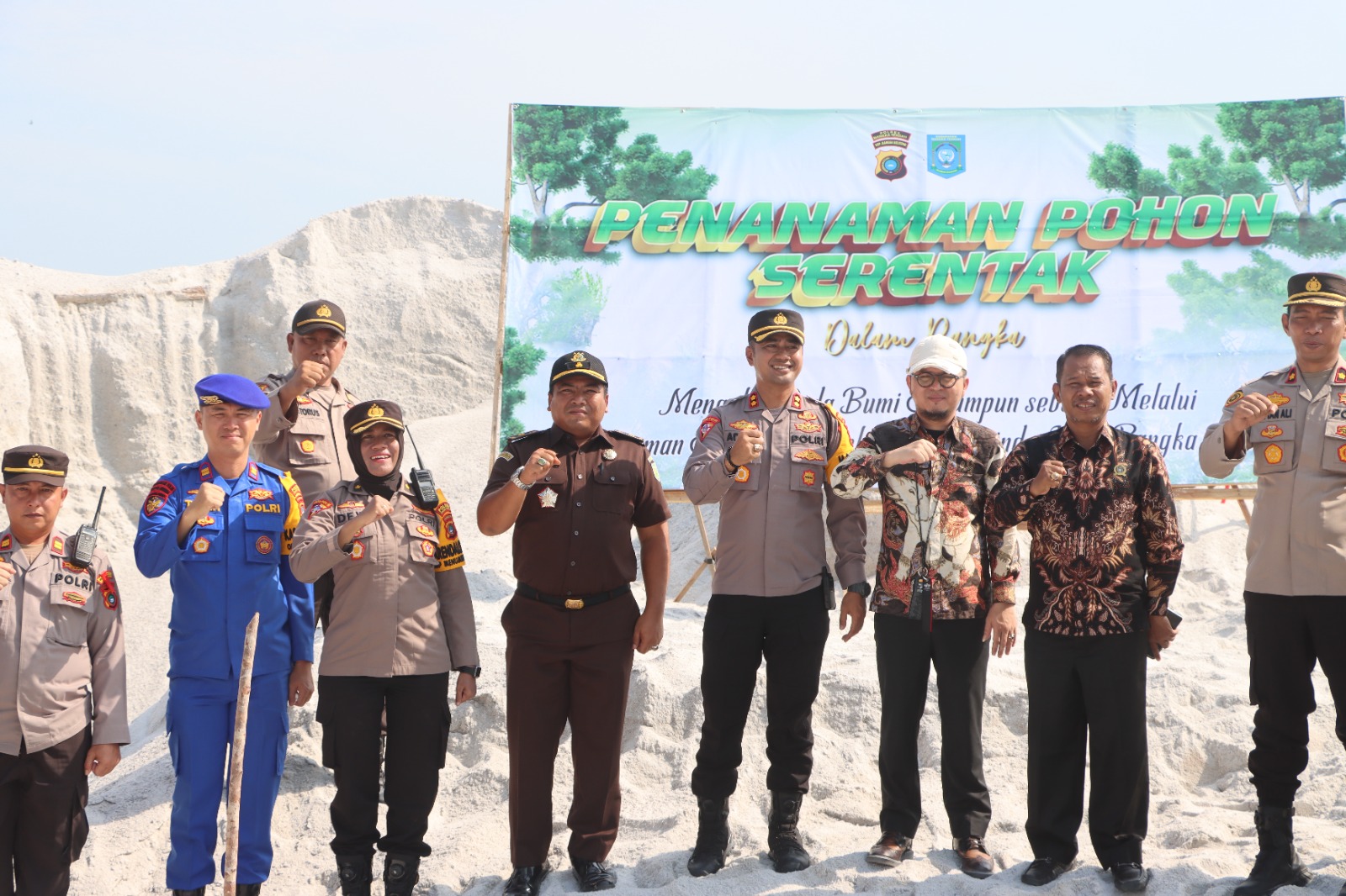 POLRES BANGKA TENGAH HIJAUKAN AREA LAHAN BEKAS TAMBANG BERSAMA FORKOPIMDA SERENTAK