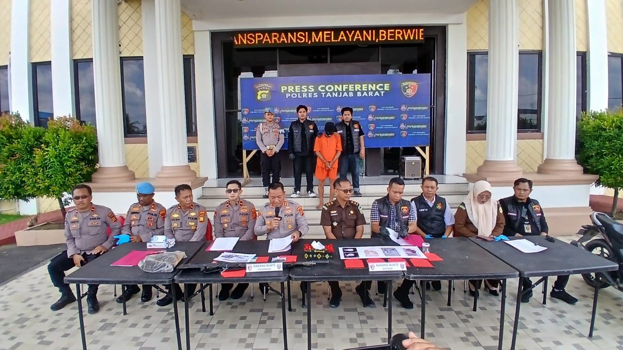 Kapolres Tanjab Barat, AKBP Agung Basuki, S.I.K., M.M. menyampaikan bahwa tersangka berinisial JM (56), seorang wiraswasta asal Tebing Tinggi, telah resmi ditetapkan sebagai pelaku utama dan kini ditahan untuk penyidikan lebih lanjut.