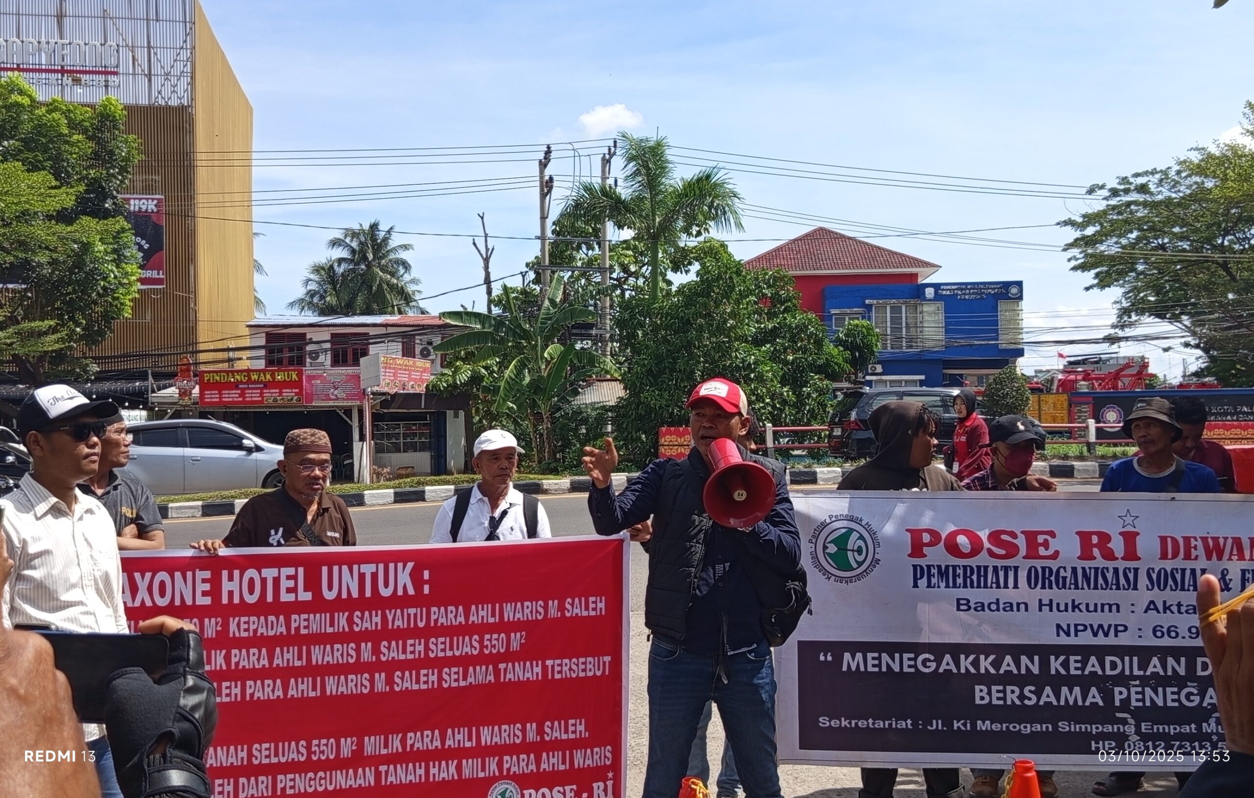 POSE RI dan JO MEDIA PARTNER POSE RI menuntut dan mendesak Hendri alias Hendri Palcomtech (Pemilik MaxOne Hotel) untuk mengosongkan dan menyerahkan tanah seluas 550 meter kepada pemilik sah yaitu ahli waris M.Saleh, menghentikan semua aktivitas diatas tanah hak milik para ahli waris M.Saleh seluas 550 meter.