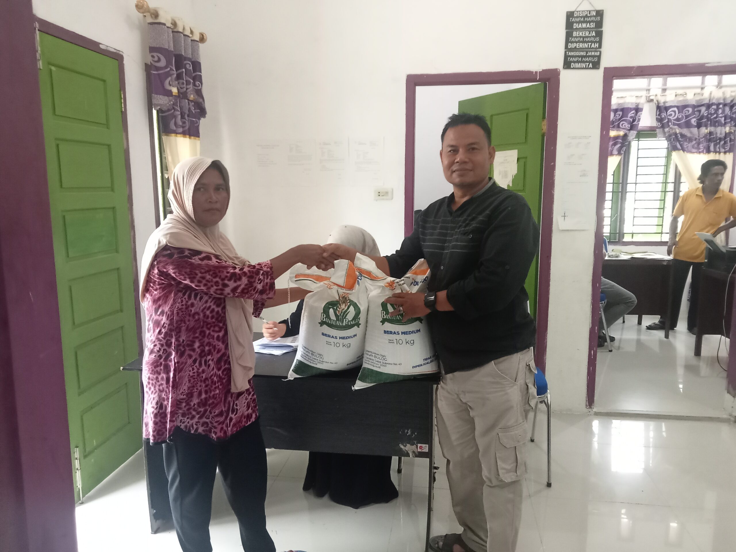 Kegiatan pendistribusian beras 10 kg tersebut berlangsung Berjalan dengan aman, lancar, tertib, dan kondusif.