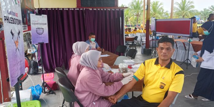 Dalam kegiatan tersebut, tim kesehatan memeriksa berbagai aspek kesehatan personel, meliputi tekanan darah, pemeriksaan mata, gigi, jantung, serta tes laboratorium dasar.