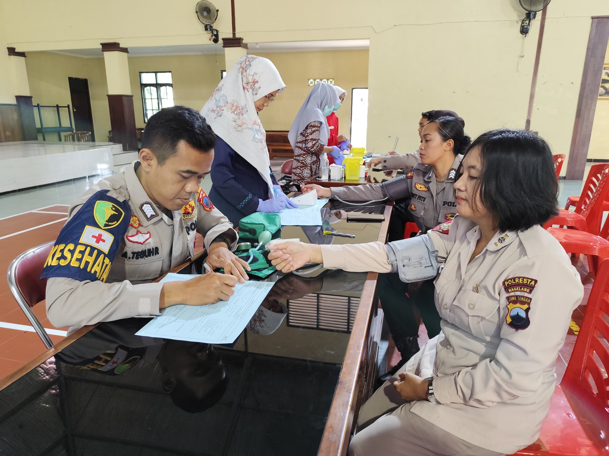 Magelang,Jateng,Mitramabesnews.com Polresta Magelang-Polda Jawa Tengah | Dalam rangka menyambut HUT Humas Polri ke-73 yang diperingati setiap tanggal 30 Oktober, Polresta Magelang Polda Jateng mengadakan aksi kemanusiaan Donor Darah. Kegiatan ini bekerjasama dengan PMI Kabupaten Magelang, dilaksanakan di Gedung Graha Utama Bhayangkara (GBU) Mapolresta setempat, Selasa (29/10/2024).