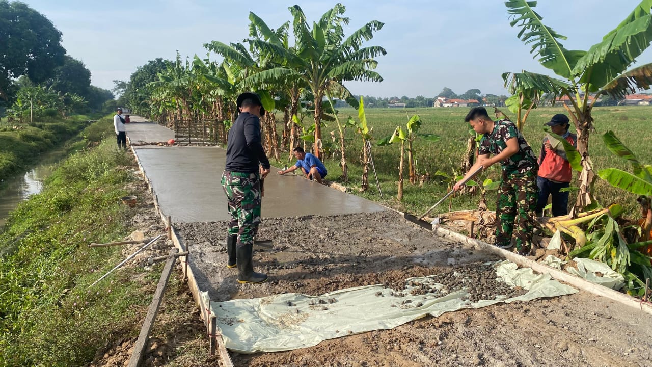 Satgas TMMD ke-126 Kodim 0616/Indramayu Kejar Target Pengecoran Rabat Beton di Desa Longok