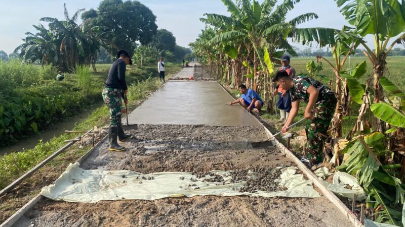 Indramayu || mitramabesnews.com – Anggota Satgas TNI Manunggal Membangun Desa (TMMD) ke-126 Kodim 0616/Indramayu bersama masyarakat setempat terus melanjutkan pengerjaan pengecoran rabat beton di Blok Sicendol, Desa Longok, Kecamatan Sliyeg, Kabupaten Indramayu, Jumat (31/10/2025).